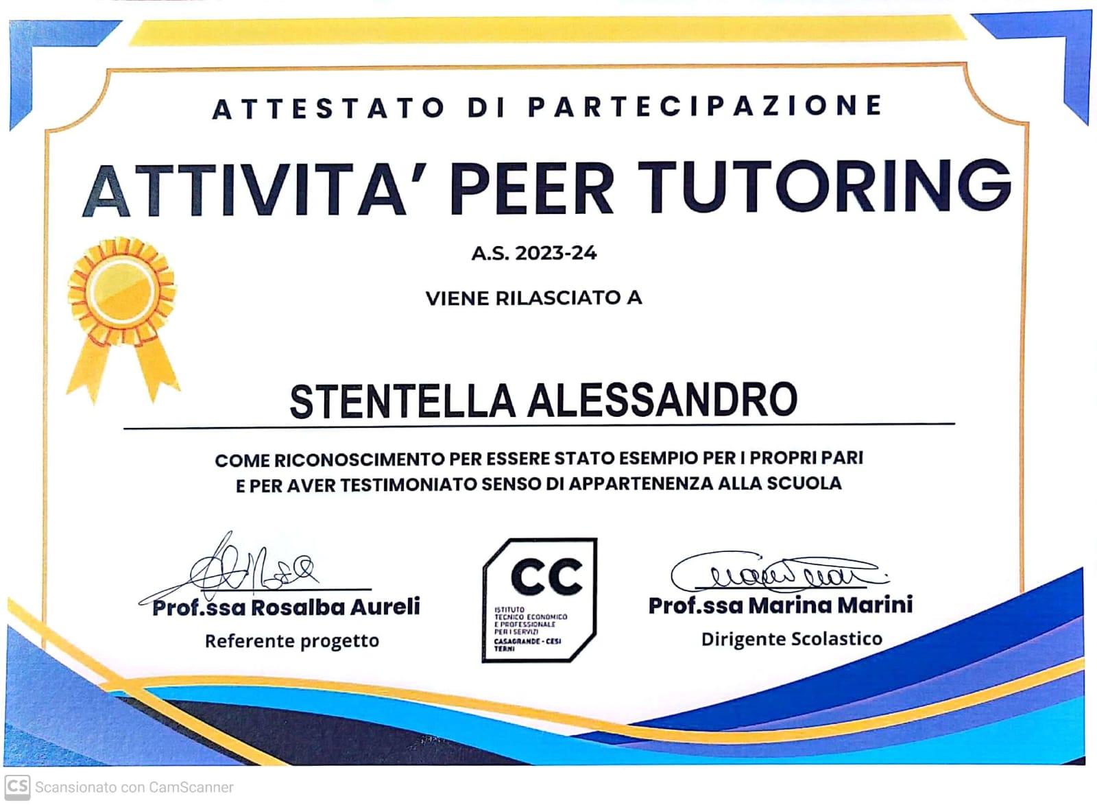 Il progetto " Peer Tutoring" mira a delineare un modello di consulenza educativa volto a favorire lo sviluppo dei valori dei nostri giovani per prevenire il disagio e promuovere il benessere fornendo al contempo assistenza nel lavoro scolastico con supporto pomeridiano allo studio, tutto questo, sotto la guida degli insegnanti.